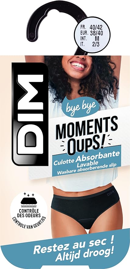 Découvrez la culotte absorbante lavable DIM Moment Oups, une protection discrète et confortable conçue pour les journées « oups ». Adaptée à la taille 48-50, cette pièce est fabriquée en coton-stretch extensible et propose une doublure technique à trois couches qui absorbe, limite les odeurs et vous garde au sec.