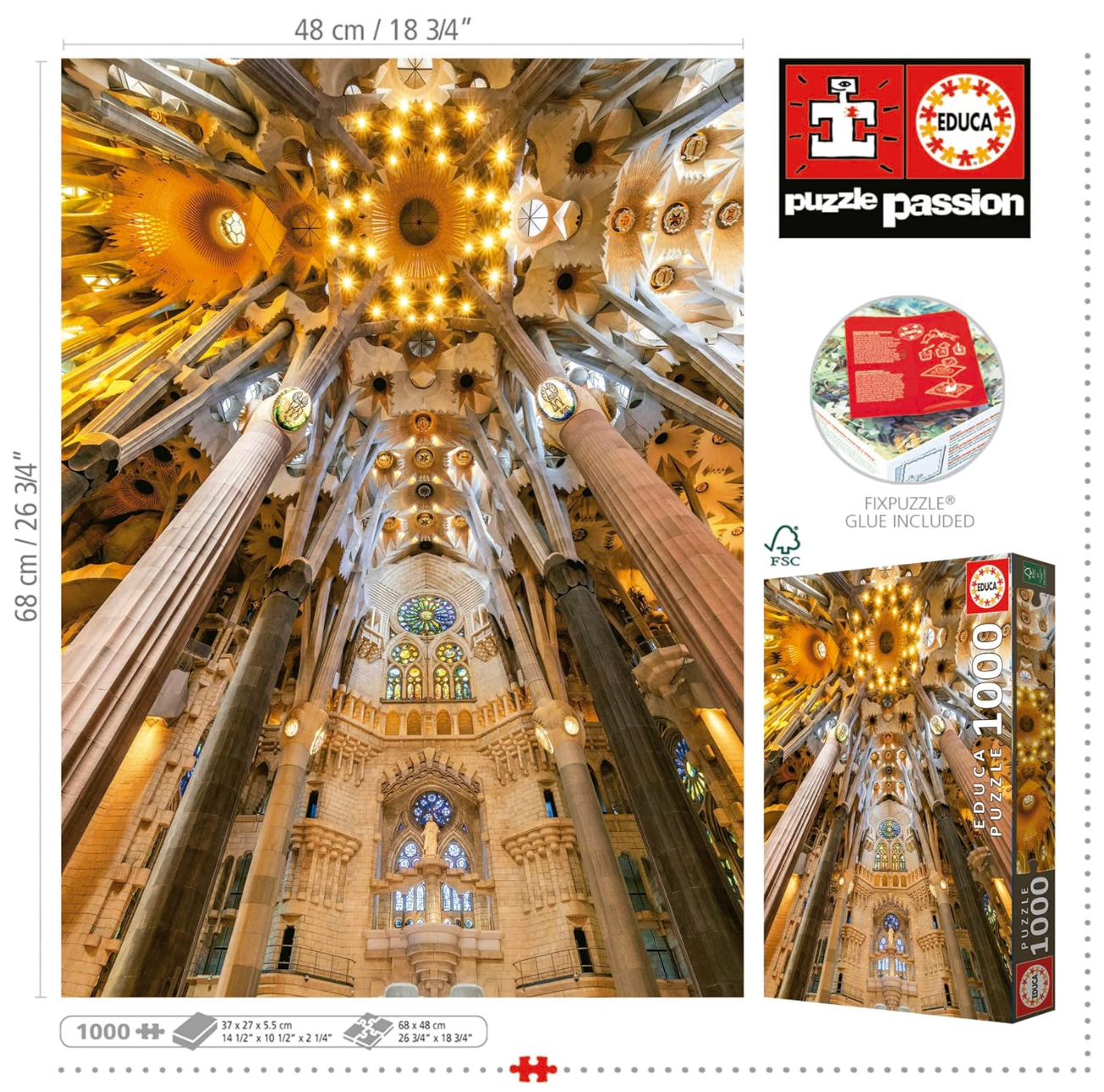 Educa - Intérieur de la Sagrada Familia | Puzzle de 1000 pièces. Mesure Une Fois monté: 48 x 68 cm | +14 Ans (19614)