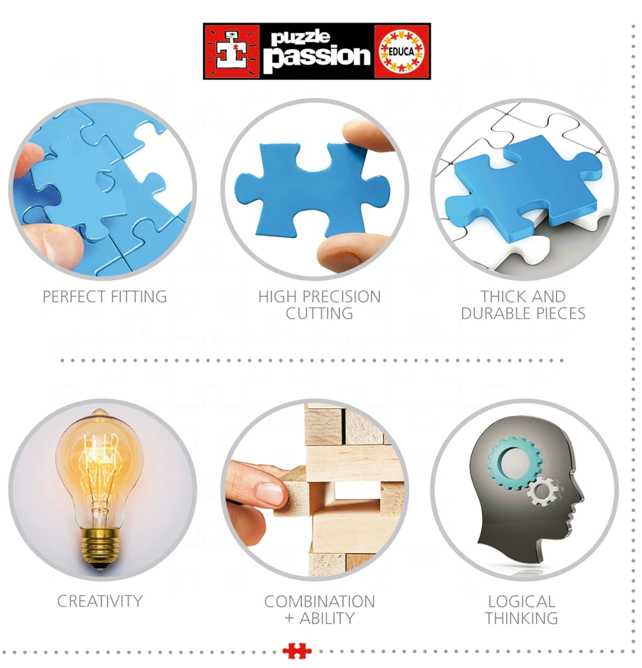 - 🧠 Stimuler votre esprit et votre créativité: les puzzles d'Educa sont une activité parfaite pour développer une motricité fine, une mémoire visuelle et des compétences psychomotrices, en plus de stimuler la curiosité et l'imagination des enfants et des adultes.