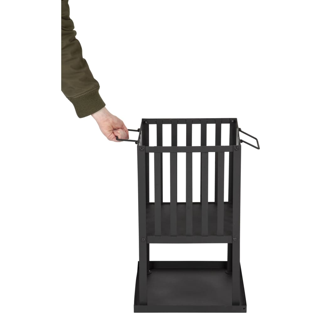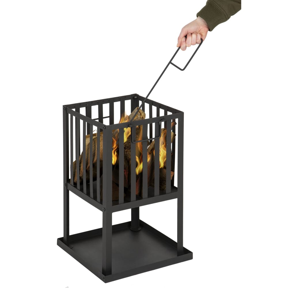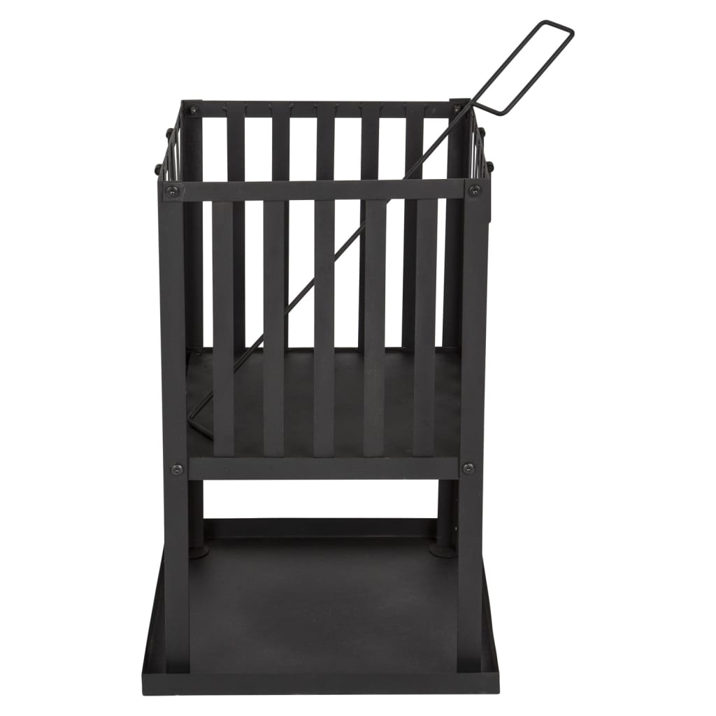 Brasero d’extérieur compact en acier noir (32 × 32 × 55 cm) – design carré – plaque à cendres incluse