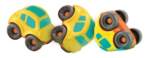 La voiture incluse culbute sur son chemin, stimulant la curiosité de l'enfant. Le système de remontée manuelle ramène la voiture au début du parcours.