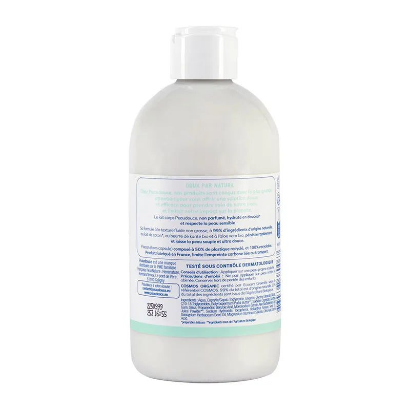 - Le lait corps Peaudouce Bio non parfumé, hydrate en douceur et respecte la peau sensible